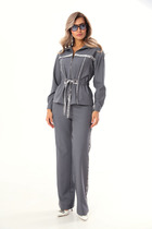 Джемпер женский свободного силуэта. Горловина круглой формы с обтачкой из основного полотна. Рукава реглан, с отрезной манжетой по низу. В боковых швах обработаны разрезы. По низу джемпера отрезной пояс.