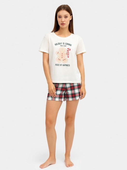 Совместные покупки Нижневартовск Женская одежда Пижамы, халаты — Mark Formelle КОМПЛЕКТ ЖЕНСКИЙ (ДЖЕМПЕР, ШОРТЫ) 592325 592325 молочный +клетка н
