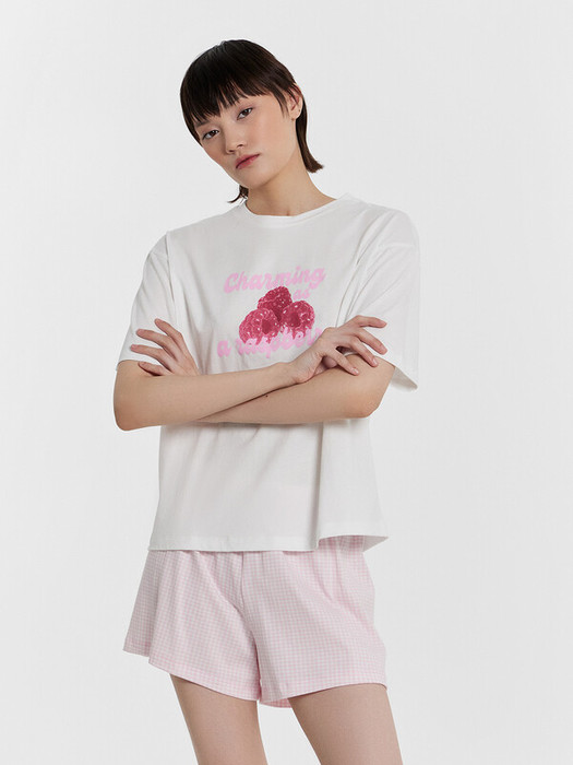 Эта женская пижама — воплощение комфорта и уюта! Джемпер свободного силуэта с круглой горловиной обеспечивает расслабленную посадку. Свободные рукава со спущенной линией плеча добавляют модели непринужденности и удобства. Низ джемпера обработан швом вподгибку, что подчеркивает качественную отделку изделия. Шорты свободного силуэта, короткие, идеально дополняют комплект, создавая легкий и практичный образ. Эластичный пояс обеспечивает комфорт и надежную посадку, а обработка низа шорт швом вподгибку делает их долговечными и аккуратными. Эта пижама выполнена из хлопковой кулирки — мягкого, дышащего и приятного к телу материала, который дарит ощущение комфорта на весь день.Такой комплект станет отличным выбором для домашнего отдыха, позволяя вам чувствовать себя уютно и свободно!