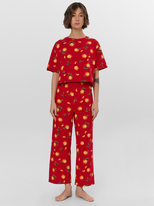 Очаровательная пижама женская с бриджами и укороченной футболкой — это идеальный комплект для комфортного отдыха и сна. Модель выполнена из хлопка, который обеспечивает мягкость, воздухопроницаемость и заботу о чувствительной коже. Укороченная футболка свободного кроя и бриджи с эластичным поясом дарят полную свободу движений, а нежные швы предотвращают натирание.