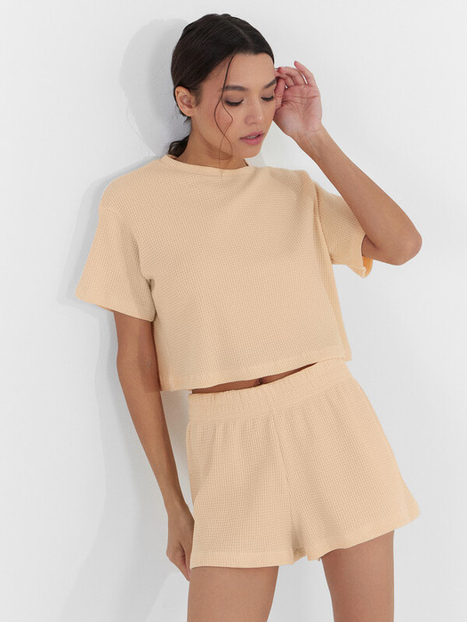 Эта легкая женская пижама от Mark Formelle состоит из футболки и шорт, выполненных из хлопкового материала с вафельной фактурой, что делает её идеальной для сна, отдыха и домашних дел. Футболка свободного силуэта, укороченная, с круглым вырезом, обеспечивает свободу движений и комфорт. Шорты длины мини с эластичной тесьмой в поясе, гарантируют удобную посадку и лёгкость движений. Этот комплект сочетает в себе стиль, удобство и функциональность, делая его отличным выбором для вашего домашнего гардероба.