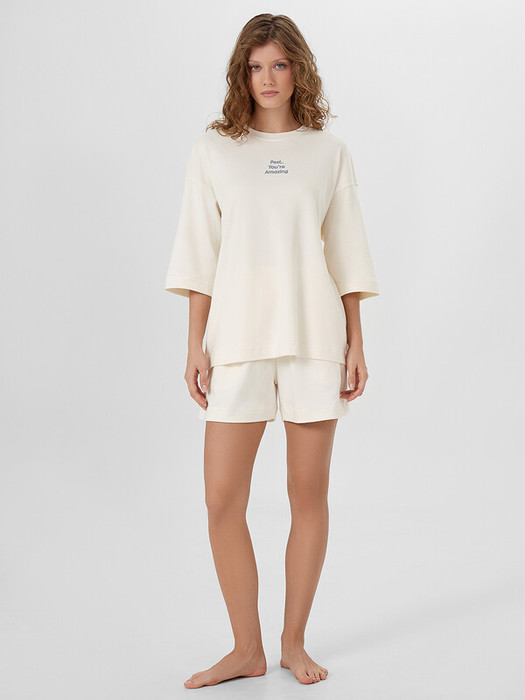 Этот комплект, состоящий из свободной футболки и шорт, идеален для отдыха и расслабления. Мягкий хлопок, из которого выполнена пижама, обеспечивает комфорт и нежность прикосновения к коже.