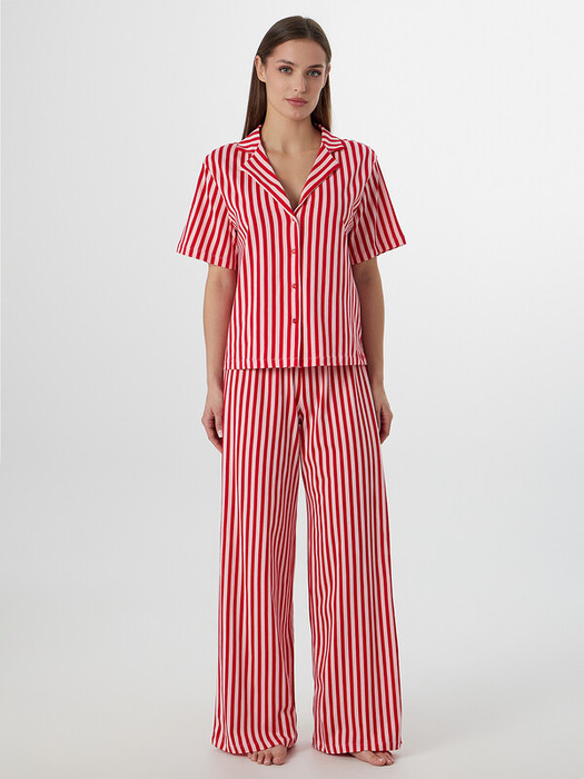 Домашний комплект  — нежность и комфорт для вашего отдыха. Набор из свободной рубашки и брюк выполнен из натурального хлопка, который обеспечивает идеальную воздухопроницаемость и мягкость.