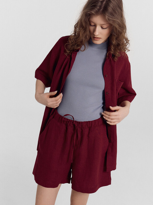 Комплект состоит из рубашки (112855-1) и шорт (132341-1). Рубашка с цельнокроеной планкой и центральной застежкой на пуговицы. На левой детали переда накладной карман. Горловина круглой формы с рубашечным воротником. Плечо спущено, пройма углублена. Рукав втачной, короткий. Низ рубашки прямой обработан швом вподгибку. Шорты женские свободного силуэта, длиной выше колен. Пояс отрезной с эластичной тесьмой внутри (вн. 40мм 40RV), на поясе пробиты петли и вставлен шнур-бейка из основного полотна. На детали переда карманы-хулиганы. Шов втачивания пояса распошит. Нижний срез обработан швом вподгибку.