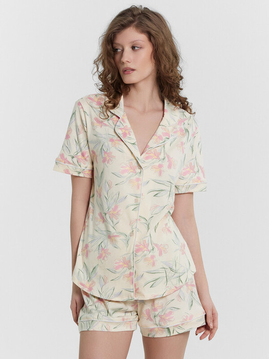Совместные покупки Нижневартовск Женская одежда Пижамы, халаты — Mark Formelle КОМПЛЕКТ ЖЕНСКИЙ (ЖАКЕТ, ШОРТЫ) 592478 592478 лилии на сливочном 1
