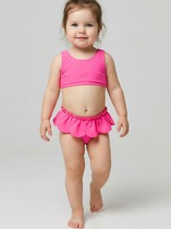 Трикотажное эластичное полотно. Трикотажное полотно, подкладка для купальников. Передняя и задняя детали топа, передняя и задняя детали трусов цельнокроенные. Подкладка передней детали топа и подкладка ластовицы, передней детали трусов из трикотажного полотна. Верхние и нижние срезы трусов и топа обработаны бейкой из основного полотна. По спинке топа застежка. Бретели из основного полотна с надставками, регулируются по длине сзади.