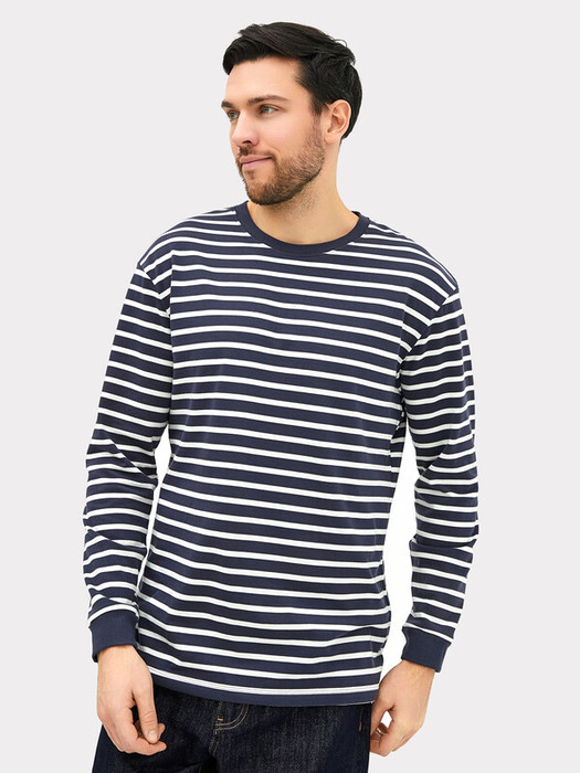 Стильный мужской лонгслив-тельняшка прямого, свободного силуэта, выполнен из высококачественного хлопка. Вырез круглый, классический, с контрастной окантовкой. Рукава длинные, свободные, с расширенными манжетами. Отличный универсальный лонгслив для casual-образов на каждый день. Дополнить такой лонг мужской в полоску легко и просто стильным низом. Его можно носить самостоятельно, как отдельный элемент или с другой верхней одеждой, создав при этом модный многослойный аутфит. Материал изделия износостойкий, мягкий и приятный к телу, не линяет и не выцветает при множественных стирках. Если вы в поиске базовой универсальной вещи, то этот лонг-тельняшка - отличный вариант!