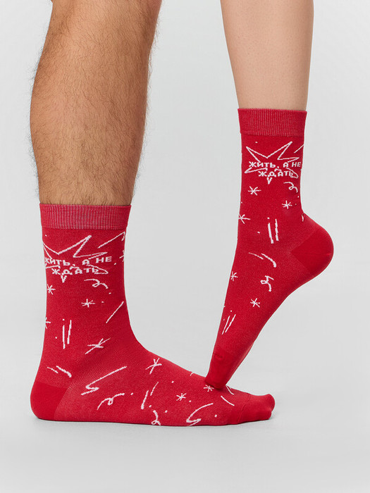 рис.3452 Носки унисекс классические, с рисунком в виде надписи и звезд.