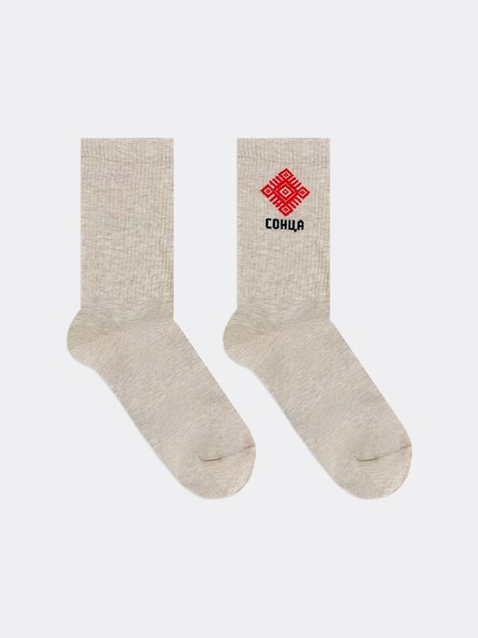 рис.2418 Носок классический гладкий с плотным бортом и рисунком в виде орнамента и надписи "СОНЦА"