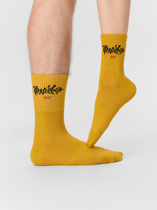 рис.3285 Носок высокий с плотным бортом и рисунком в виде надписи "ФОРЕВЕР янг".