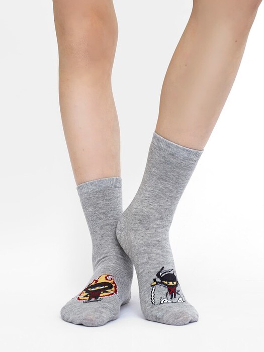 рис.2032  Детский носок гладкий с рисунком в виде ниндзя.