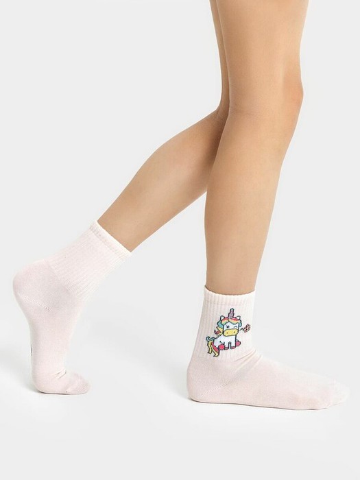 рис.2380  Детский носок с высоким плотным бортом и рисунком в виде единорога