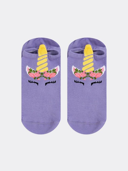 рис.1942  Детский носок гладкий суперкороткий с рисунком в виде единорога и 3-д рисунком.