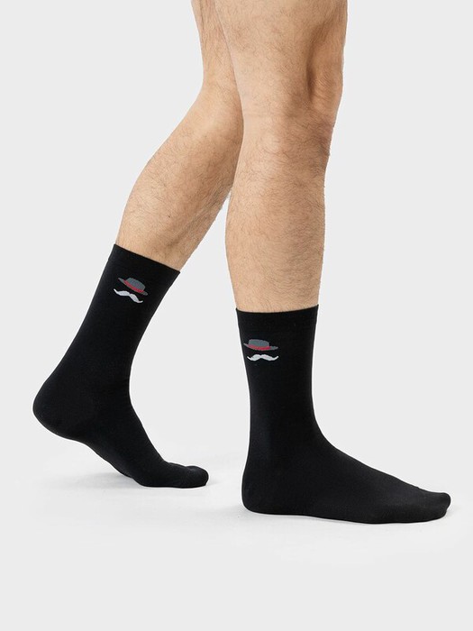 рис.2250   Мужской носок классический высокий с рисунком в виде шляпы и усов.