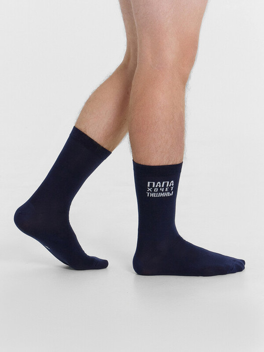рис.2638 Мужской носок классический, высокий с рисунком в виде надписи " Папа хочет тишины".