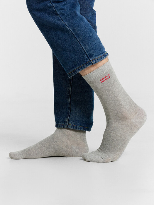 рис.3034 Мужской носок классический, высокий, с рисунком в виде надписи "СТАТУС ЖЕНАТ".
