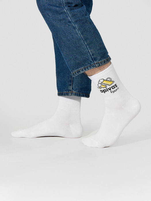 Рис.3106. Мужские носки, средней длины с резинкой на поголенке, рисунком и надписью "Apivas будет?"