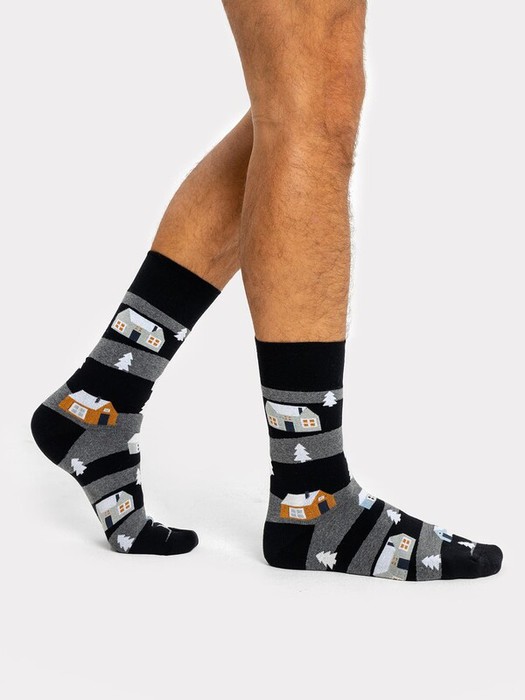 рис.2505 Классический махровый мужской носок с рисунком в виде домиков.