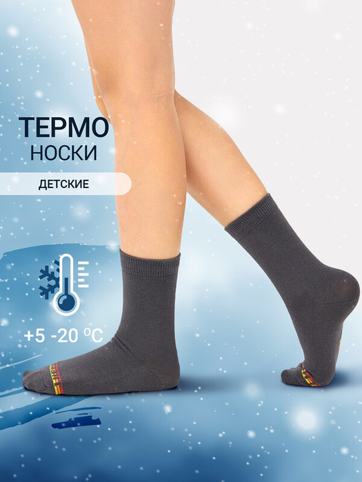 рис.035 Гладкий детский носок из термосырья. Специальный полиэстер Termolite отлично сохраняет и удерживает тепло, мгновенно отводит влагу и делает изделие долговечным, а вискоза Viloft дарит полотну необычайную мягкость и увеличивает его прочность в мокром состоянии. Такие носки точно не дадут замёрзнуть!