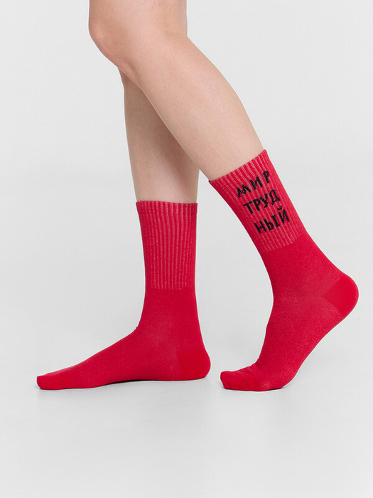 рис.3054 Женский носок с высоким плотным бортом и рисунком в виде надписи "МИР...ТРУДный".