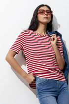 Перед и спинка цельные. Диагональные проймы окантованы бейкой из основного полотна. Окантовка пройм переходит в бретели.