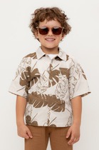 Сорочка верхняя для мальчиков прямого силуэта с воротником. По переду обработана застежка на пуговицы и петли. Диаметр пуговицы 1 см, 4 прокола. Рукава короткие, втачные, слегка спущены. На спине кокетка. Нижние срезы изделия и рукавов обработаны швом в подгибку.