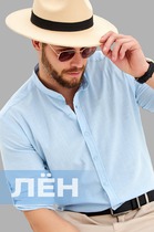 Мужская льняная рубашка с воротником-стойкой Happyfox