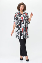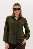 Блузка женская свободного силуэта из ткани. Блузка с цельнокроеной планкой и центральной застежкой на пуговицы. На левой детали переда накладной карман.