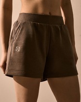 Шорты свободного силуэта, высокая посадка. Верх застрочен в подгибку с протянутым шнуром из основного полотна и резиной 20RV. В боковых швах карманы. Низ шорт обработан вподгибку.