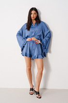 Шорты изготовлены из полотна - Интерлок. Шорты облегающего силуэта с высокой линией талии, короткие. Пояс широкий отрезной фигурный с эластичной тесьмой внутри. Боковой шов перенесен на деталь переда. На задних половинках отрезная фигурная кокетка.