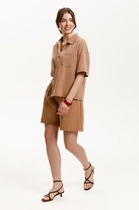 Мини-шорты свободного силуэта из легкого трикотажного футера. Высокая посадка на талии, эластичная тесьма в поясе, регулировочный шнурок-завязка и удобные боковые карманы – комфортный минимализм!