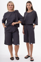 Мини-шорты свободного силуэта из легкого трикотажного футера. Высокая посадка на талии, эластичная тесьма в поясе, регулировочный шнурок-завязка и удобные боковые карманы – комфортный минимализм!