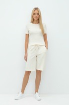 Шорты облегающего силуэта, с высокой посадкой, длиной выше колен.