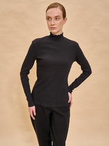 Горловина круглой формы, плотно прилегающая к шее, обработана притачной бейкой из рибаны, шов притачивания отстрочен на основное полотно. Плечо спущено, пройма углублена, с прямыми срезами. Шов втачивания рукава расстрочен (одна строчка по рукава, вторая по переду/спинке) .