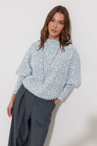 Свитшот изготовлен из трикотажного полотна футер 3х нитка без подчеса. Свитшот свободный, укороченный. Горловина обработана обтачкой из рибаны. Рукава втачные длинные с отрезными манжетами из рибаны. По низу свитшота отрезной пояс из рибаны.