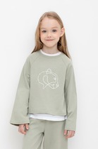 Рукава втачные длинные, плечо спущено. По низу рукава отрезная манжета из рибаны. Центральная застежка на тесьму молнию. По переду накладные карманы кенгуру.