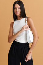 Нижний срез топа обработан швом вподгибку на 2х иглольной плоскошовной машине.