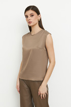 Стильный топ прилегающего силуэта. Выполнен из хлопковой трикотажной рибаны. Длина топа до линии талии. Вырез круглый, пройма "американского" типа. Рекомендуем для спорта и отдыха!