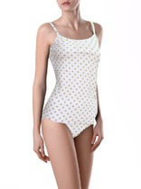 Топ облегающего силуэта на широких бретелях, укороченный. Горловина глубокая округлой формы, пройма «американская».Топ на подкладке из основного полотна.