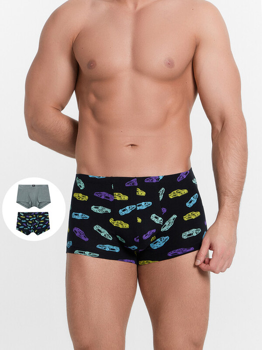 Совместные покупки Нижневартовск Мужская одежда Трусы — Mark Formelle ТРУСЫ МУЖСКИЕ (2ШТ) 411216-2 411216-2 машинки на черном +серый мел