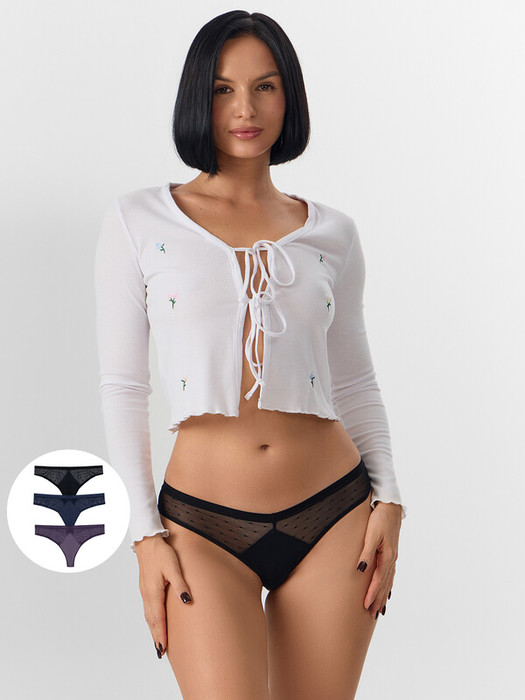 Эти трусы женские станут настоящим открытием для тех, кто ищет нижнее белье, сочетающее в себе удобство и элегантность. Модель бразилиана создана из высококачественных материалов: нежный хлопок в передней части обеспечивает комфорт и воздухообмен, а эластичные сетчатые вставки по бокам создают эффект идеального прилегания без швов.