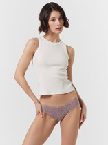 Классические трусики из натурального хлопкового полотна и нежного кружева. Линия талии чуть завышена, боковые части немного расширены. На верхнем срезе и по ножкам – эластичная тесьма. Верхняя часть передней детали выполнена из полупрозрачного кружева.
