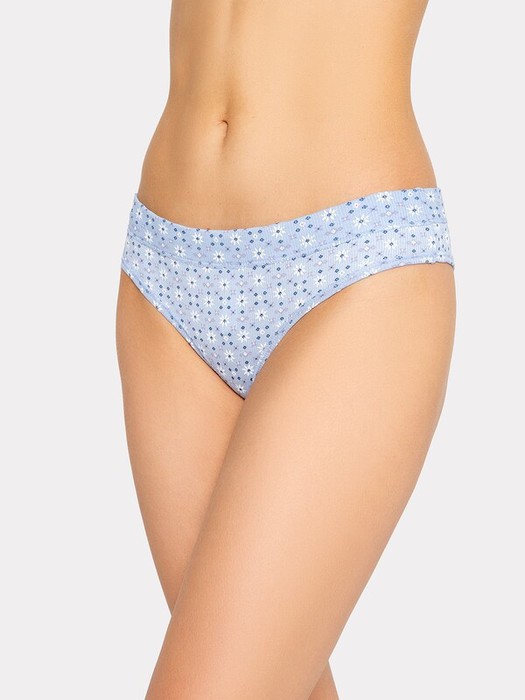Трусы женские, средняя линия талии, силуэт - бразилиано. Передняя и задняя детали выполнены из рибаны. Верхний срез трусов обработан бейкой поперечной из рибаны, внутри жилка 6мм. Нижние срезы обработаны бейками поперечными из рибаны. Подкладка ластовицы из хлопка, верхний срез ластовицы притачан к детали из рибаны (с изнаночной стороны имитация мужского гульфика, с лицевой стороны декоративные строчки).