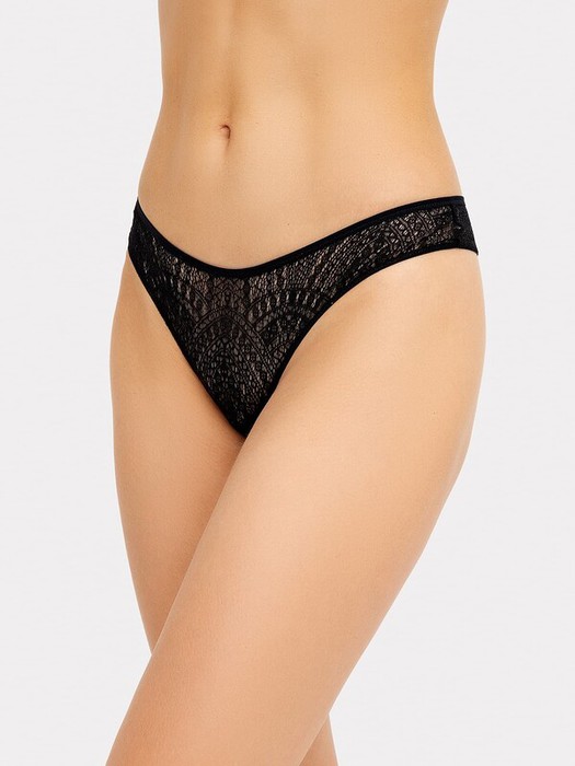 Трусы женские, средняя линия талии, бразилиано. Передняя и задние детали выполнены из кружевного полотна. Подкладка ластовицы из хлопка, отлетная по верхнему срезу. Верхний срез обработан ловаблем. Нижние срезы обработаны жилкой.