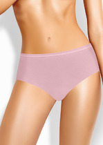 Трусы женские макси с высокой посадкой из эластичной сетки. Передняя деталь с косыми срезами от пояса к бочкам. Подкладка ластовицы из кулирной глади настрочена по переднему краю. По талии эластичная тесьма 15 мм (жилка), настрочена только на участке переда, а по спинке отлетная. Верхний срез по задней детали, участок косых срезов на передней детали и ножки обработаны эластичной тесьмой 6 мм по лицевой стороне (жилка).