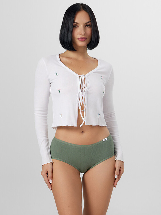 Трусы женские шорты, выполнены из рибаны. Передняя и задняя детали цельные.