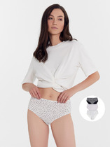 Трусы женские, силуэт - слипы, выполнены из трикотажного полотна сетки. Задняя и передняя деталь цельнокроеные. Подкладка ластовицы из кулирного полотна, отлетная по врхнему срезу. Верхние и нижние срезы обработаны закруткой, и собраны со сборкой на эл. тесьму 6мм (жилка Wt4-6, девсел 13460W) зигзагом.