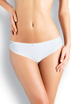 Трусы женские, силуэт - слипы, выполнены из трикотажного полотна сетки. Задняя и передняя деталь цельнокроеные. Подкладка ластовицы из кулирного полотна, отлетная по врхнему срезу. Верхние и нижние срезы обработаны закруткой, и собраны со сборкой на эл. тесьму 6мм (жилка Wt4-6, девсел 13460W) зигзагом.