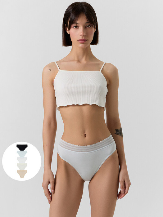 Слип-бикини из натурального хлопкового полотна – гипоаллергенного и приятного на ощупь. Линия талии завышена, бедра открыты. Верхний срез обработан декоративной тесьмой, по ножкам – жилка. Рекомендуем!