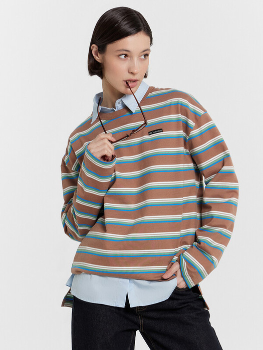 Совместные покупки Нижневартовск Женская одежда Джемперы, свитеры, водолазки — Mark FormelleДЖЕМПЕР ЖЕНСКИЙ 122924 122924 полоски на т.бежевом 55144